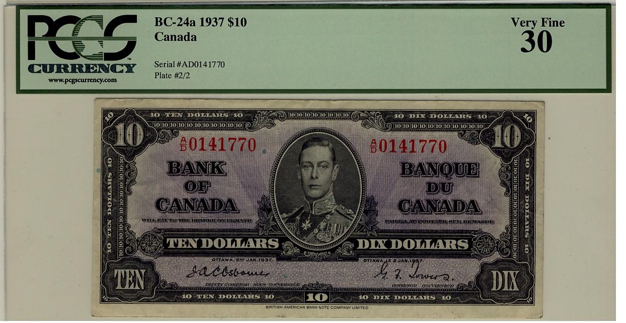 1937 $10 BC-24a A/D0141770 PCGS VF30