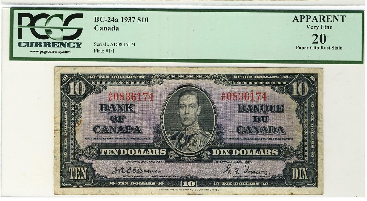 1937 $10 BC-24a #A/D0836174 PCGS Apparent VF20