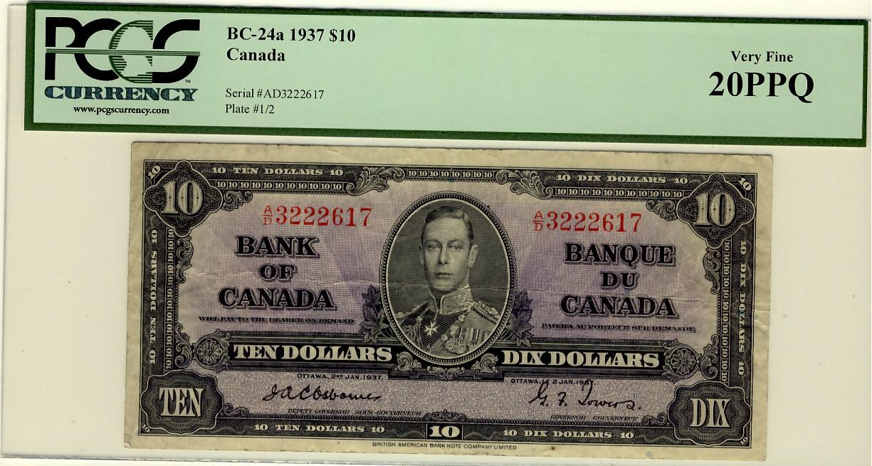 1937 $10 BC-24a #A/D3222617 PCGS VF20PPQ