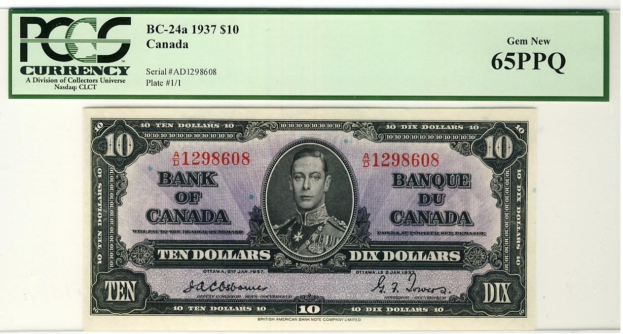 1937 $10 BC-24a #AD1298608, PCGS UNC65PPQ. Lovely and quite scarce.