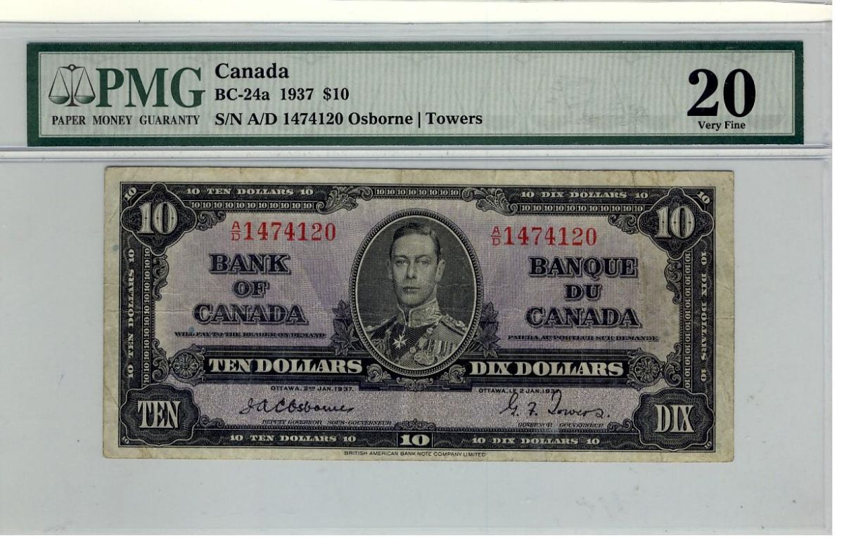 1937 $10 BC-24a #AD1474120, PMG VF20.