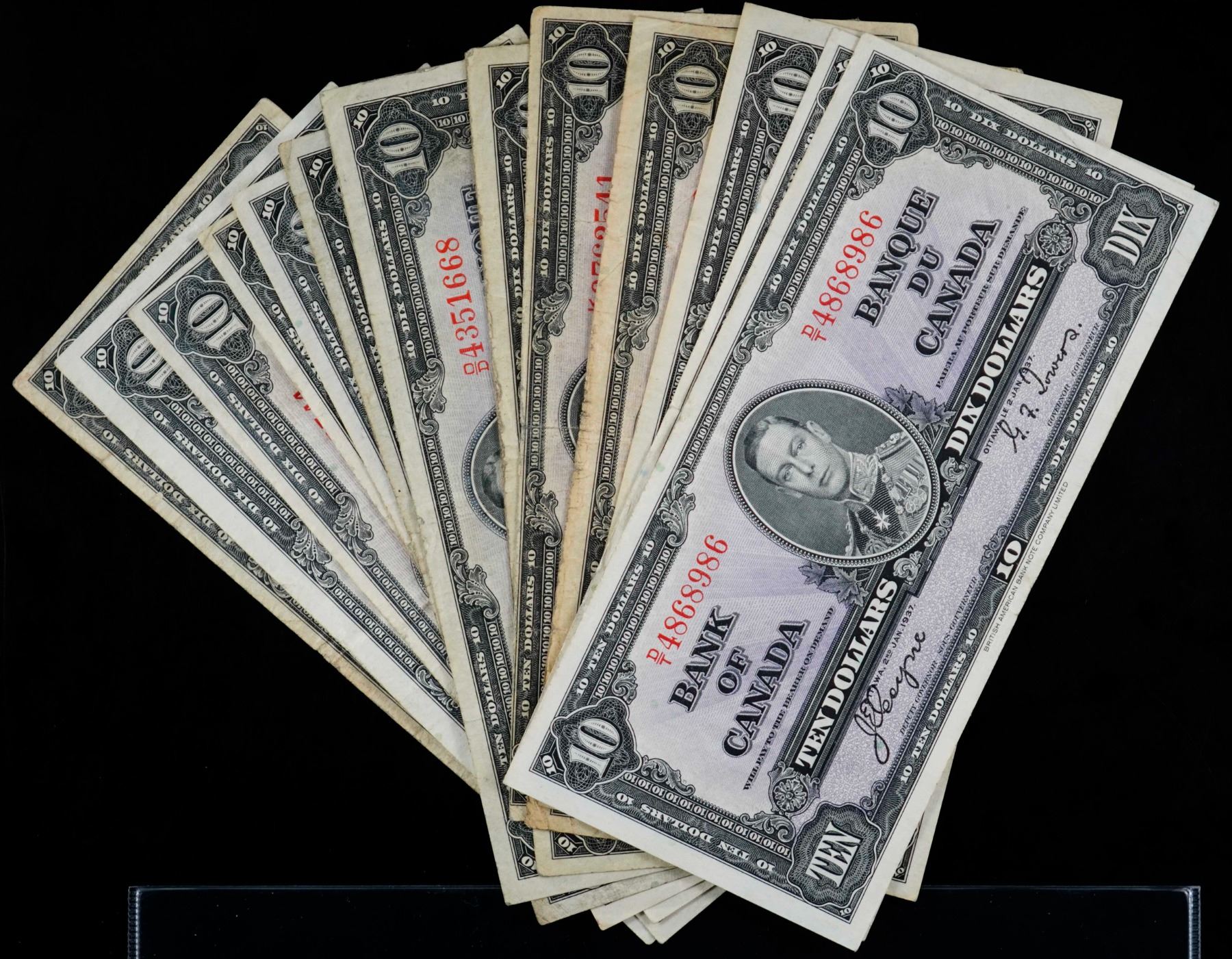 1937 $10 BC-24b & 24c Fine to about EF. Lot of 13 notes.