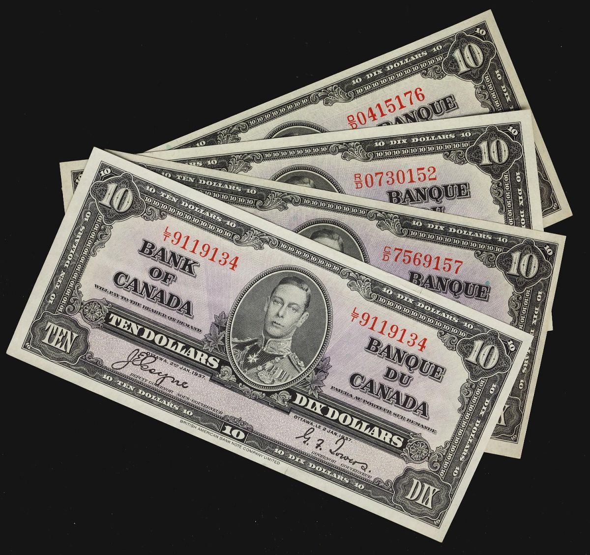 1937 $10 BC-24b(3) and BC-24c. Lot of four notes EF to AU+.