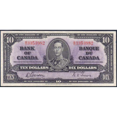 1937 Ten Dollars Gordon-Towers, BC-24b Serial Number B/D3353982. Well centered, PMG Gem Uncirculated 66 Exceptional Paper Quality