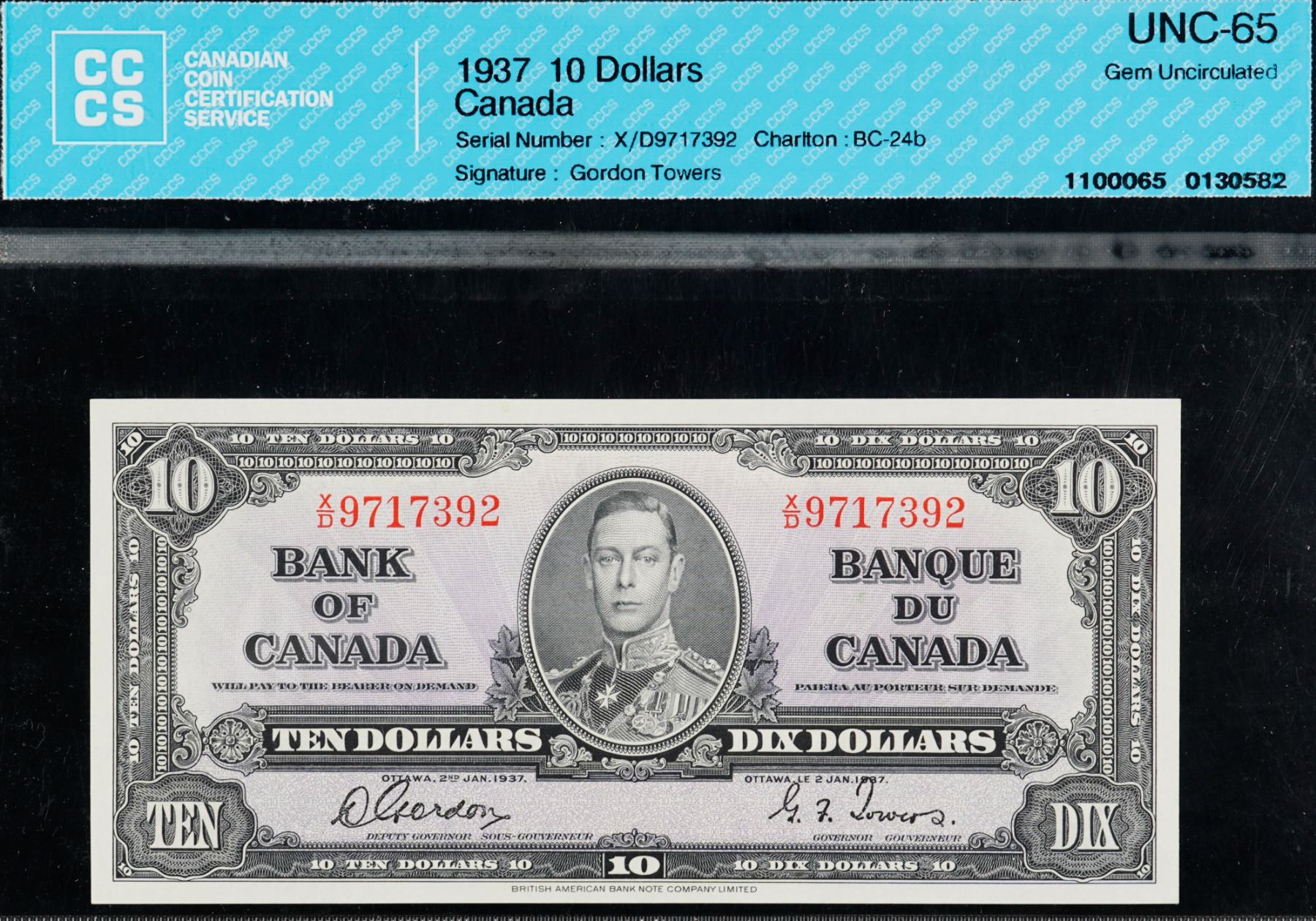 1937 $10 BC-24b #X/D9717392 CCCS Gem Uncirculated-65
