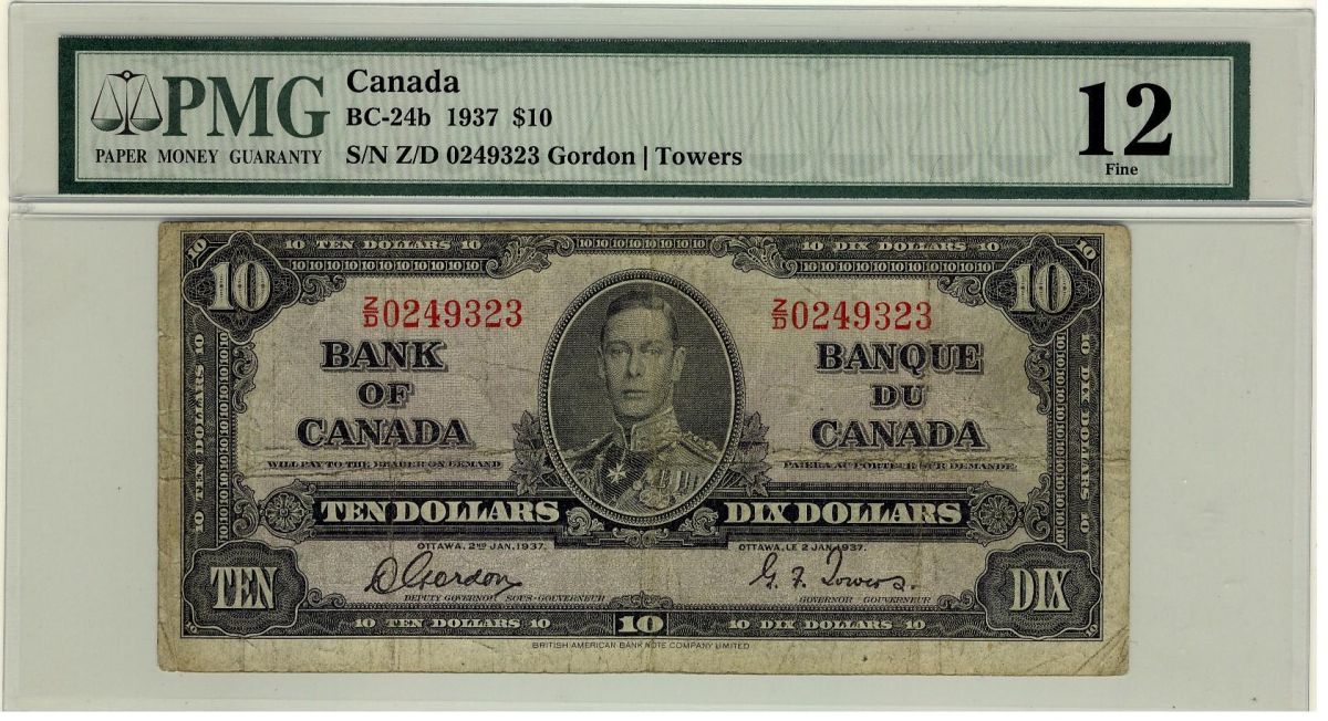 1937 $10 BC-24b #ZD249323 PMG F12,