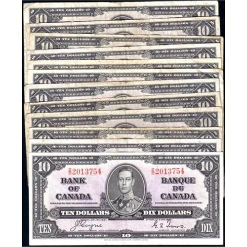 1937 Ten Dollars, Coyne-Towers, BC-24c, twelve pieces, Fine and better, several with problems