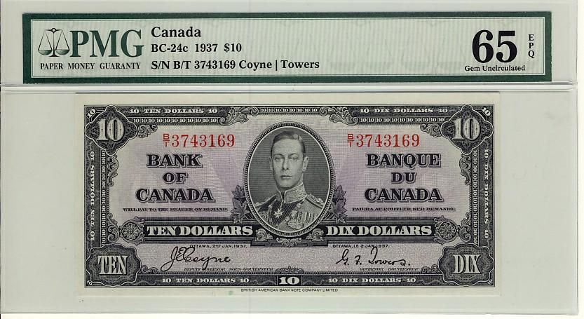 1937 $10 BC-24c B/T3743169 PMG UNC65EPQ