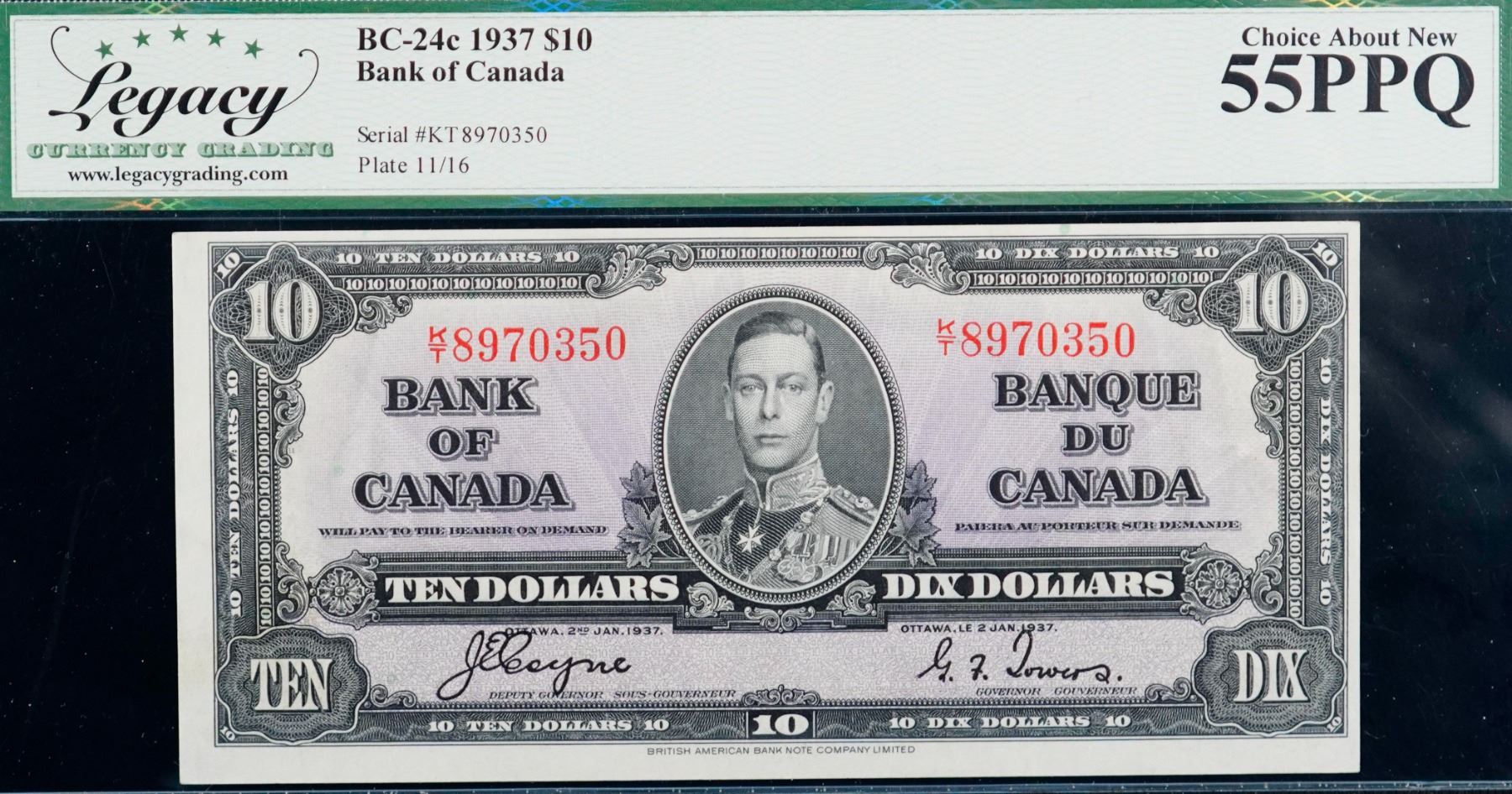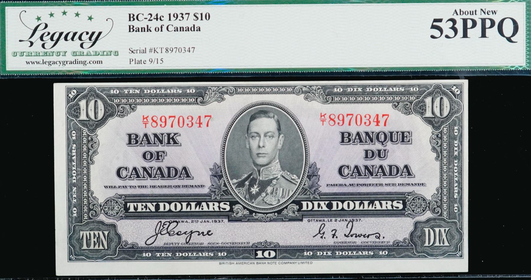 The cataloguer has taken every reasonable measure to ensure that all of the lots in this sale are as described and genuine. All raw coins and banknotes have been graded by the cataloger or the auction house which represent our best professional opinion. To grade coins and banknotes, we use Canadian grading standards, 42 years of experience and good conscience. However, grading is a subjective description in the opinion of the cataloger or the auction house. Among experts there are often differences of opinion on the grading and the eye appeal of a coin. The strike and the state of preservation are often debated. The Canadian Numismatic Company acts as an agent between consignors and buyers. The Canadian Numismatic Company does not guarantee that any coin or banknote cataloged will meet the standards, or the grade, of any third party grading companies. No warranty, whether impressed or implied. Items are as is, no warranty given. We cannot accept responsibility and waive all liability resulting in financial losses, and or incidentals accruing from the sale of any items, nor can we guarantee that items graded by third party services will grade the same if submitted to a different grading service or re-submitted to the same company. Statements by The Canadian Numismatic Company regarding the condition, the eye appeal, the strike and the population of items are for guidance only. All lots offered are sold "AS IS". Title to all lots remains with the auction house until paid for in full by the purchaser. But they are held at the risk of the purchaser once the time of the sale.