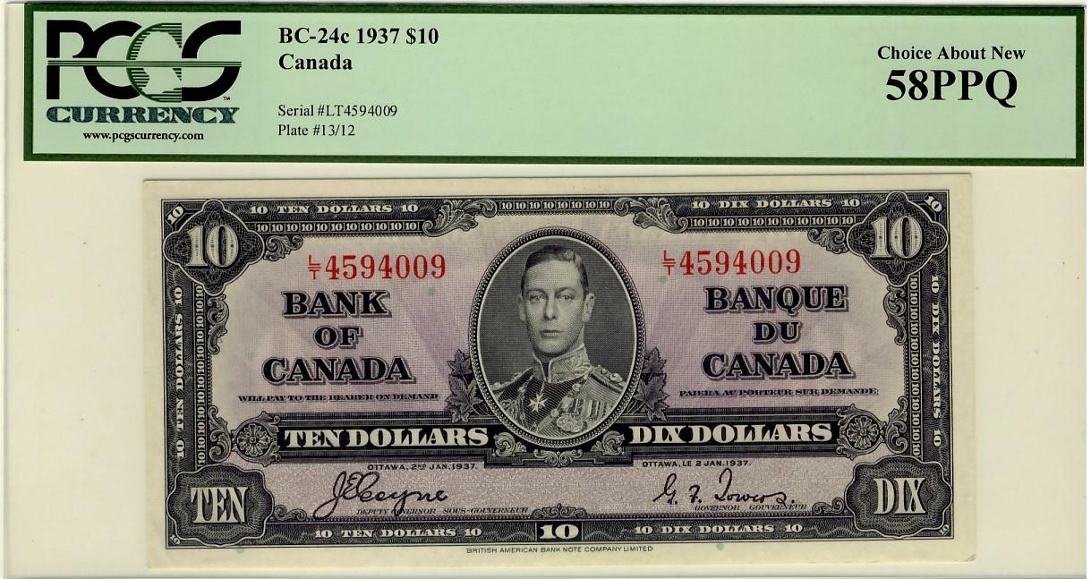 1937 $10 BC-24c L/T4594009 PCGS AU58PPQ