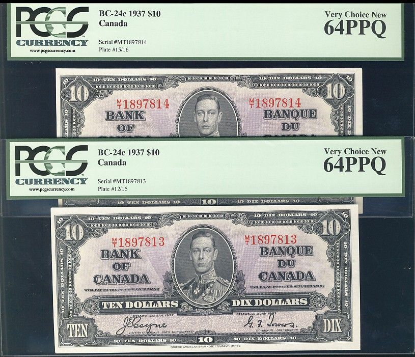 1937 $10 BC-24c #MT1897813/7814 PCGS CH UNC64PPQ. Lot of 2 consecutive notes.