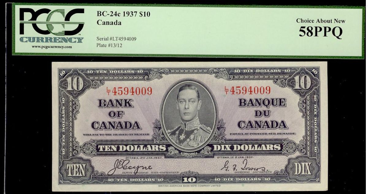 1937 $10 BC-24c PCGS AU58