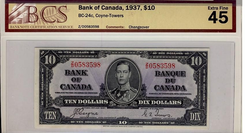 1937 $10 BC-24c #ZD0583598 BCS EF45.