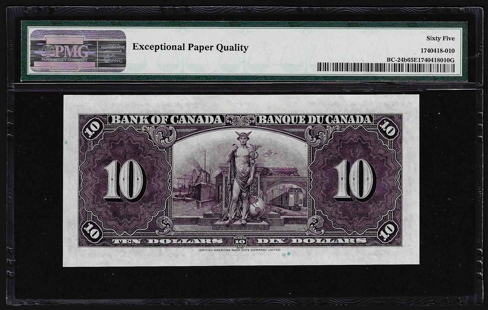 One 1937 $10 Bank of Canada Note PMG Gem Uncirculated 65EPQ. PMG Certified.