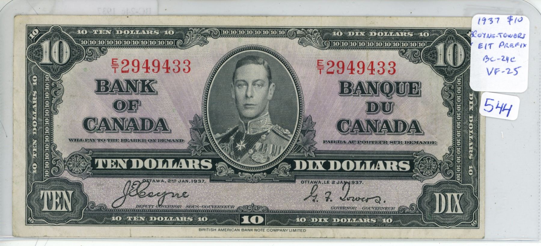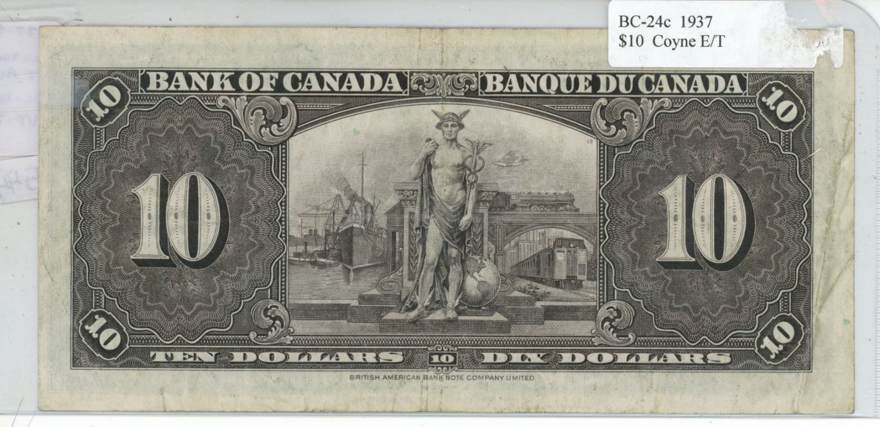 1937 $10. Coyne-Towers signatures. E/T Prefix. BC-24c. VF-25. Nice.