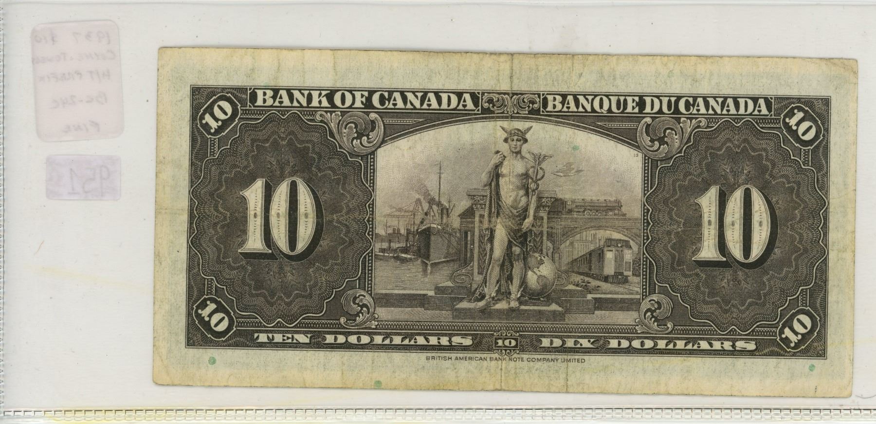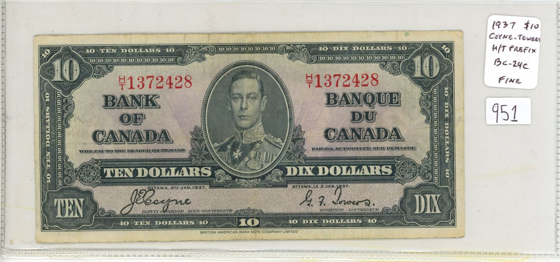 1937 $10. Coyne-Towers signatures. H/T Prefix. BC-24c. Fine-12.
