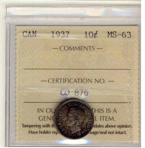 1937 10¢ ICCS MS-63