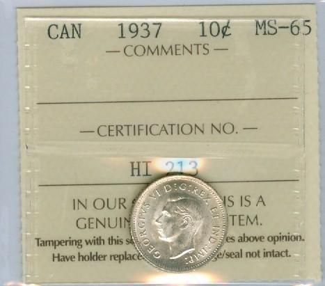 1937 10¢ ICCS MS65. Blast white and lustrous example.