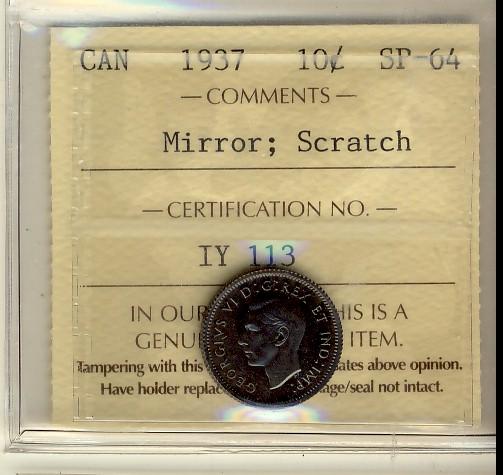 1937 10¢ ICCS SP64. Mirror example designated with scratch.