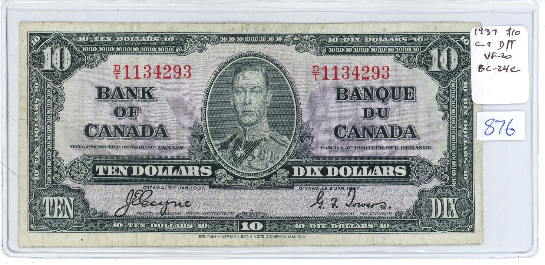 1937 $10. King George VI. Coyne-Towers signatures. D/T Prefix. BC-24c. VF-20.
