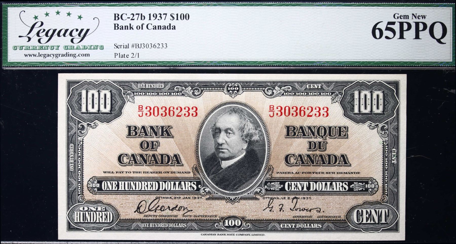 1937 $100 BC-27B #B/J3036233 LCG Gem Uncirculated-65PPQ