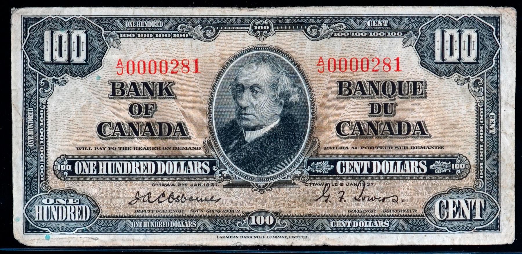 1937 $100 BC-27a #A/J0000281 "Low Number" A Solid Fine example.