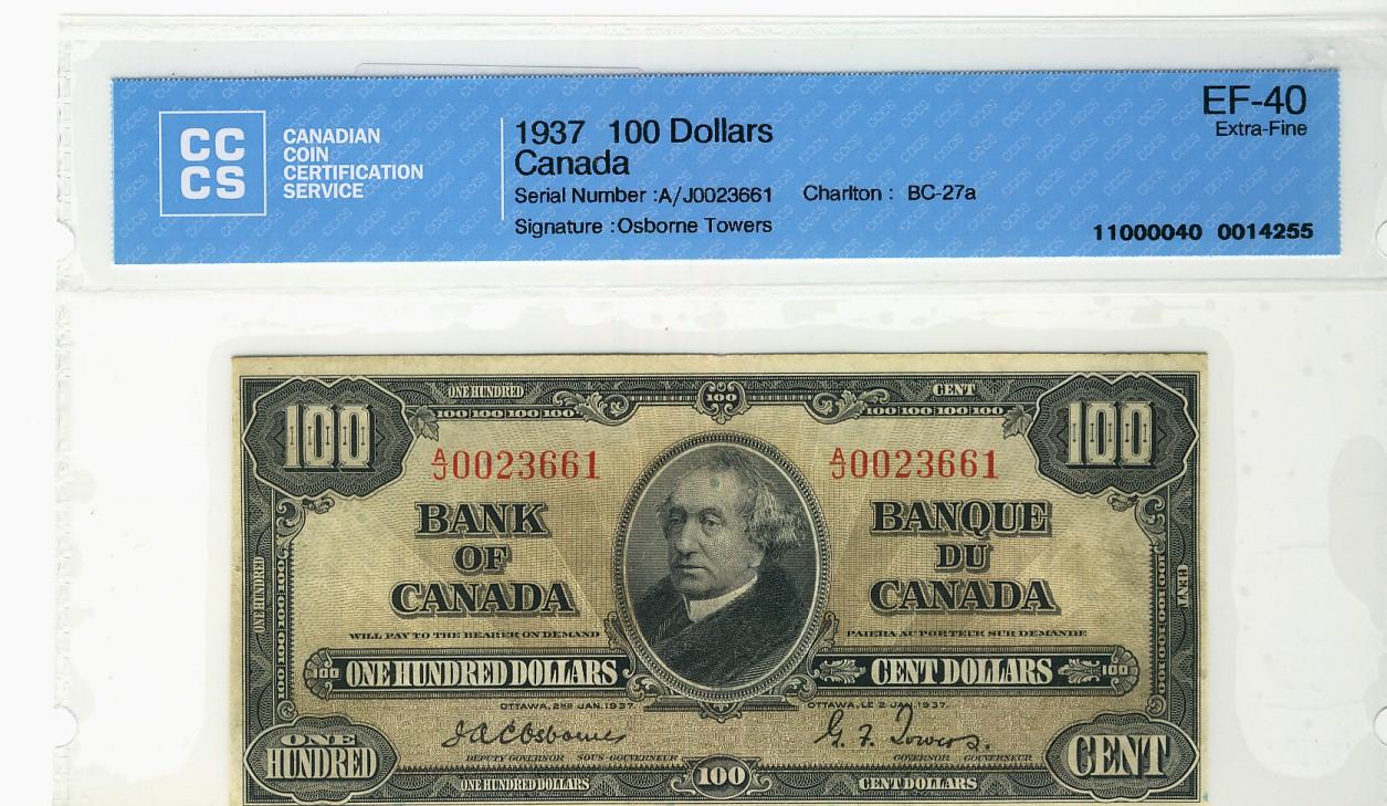 1937 $100 BC-27a #AJ0023661, CCCS EF40.