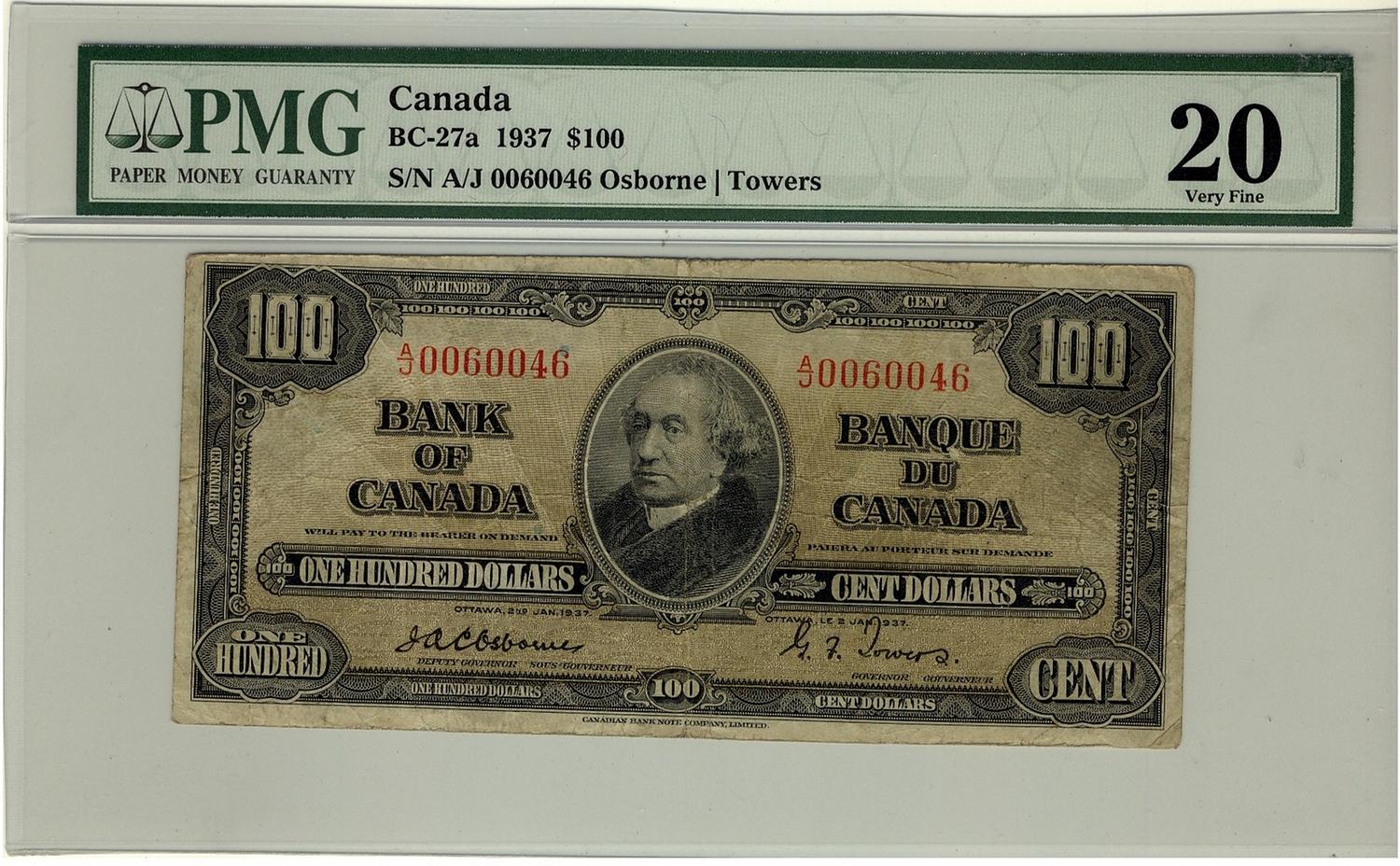 1937 $100 BC-27a #AJ0060046, PMG VF20.