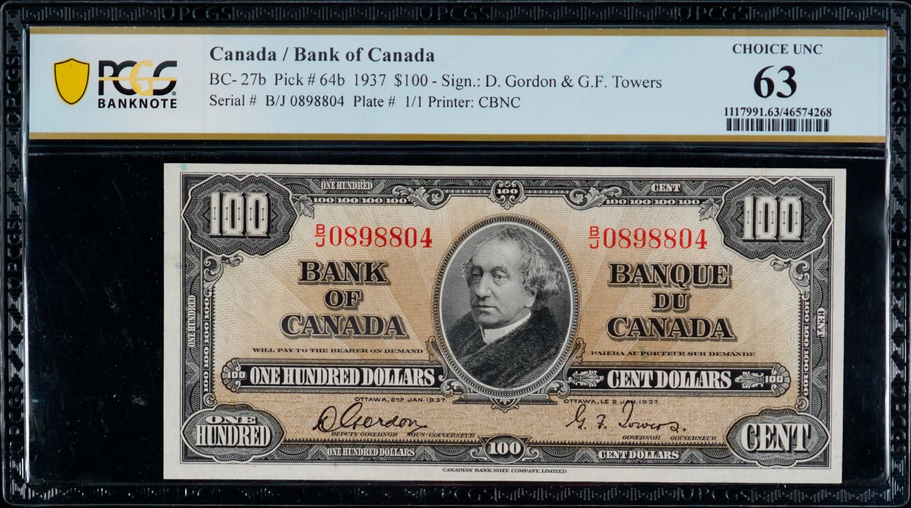 1937 $100 BC-27b #B/J0898804 PCGS Choice Uncirculated-63