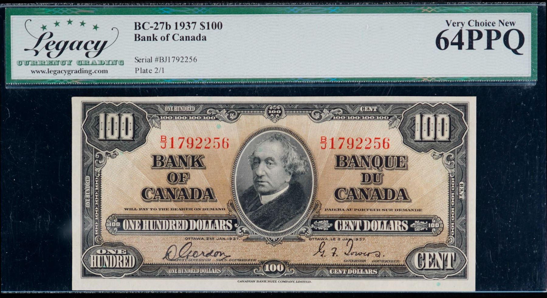 1937 $100 BC-27b #B/J1792256 Legacy Choice Uncirculated-64PPQ. A very nice and bright example.