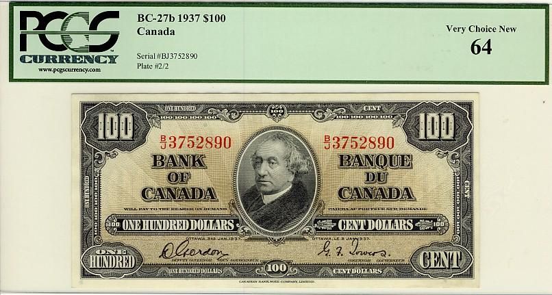 1937 $100 BC-27b B/J3752890 PCGS UNC64