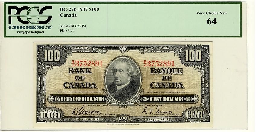 1937 $100 BC-27b B/J3752891 PCGS UNC64