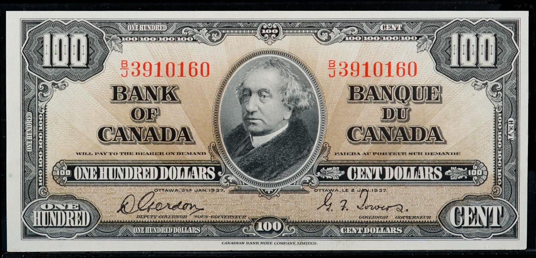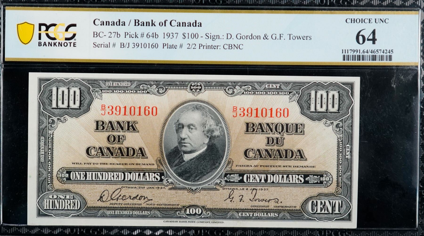 1937 $100 BC-27b #B/J3910160 PCGS Choice Uncirculated-64
