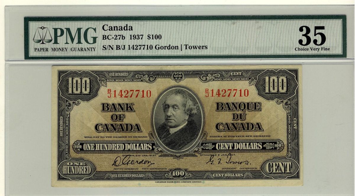 1937 $100 BC-27b /BJ1427710 PMG VF35,