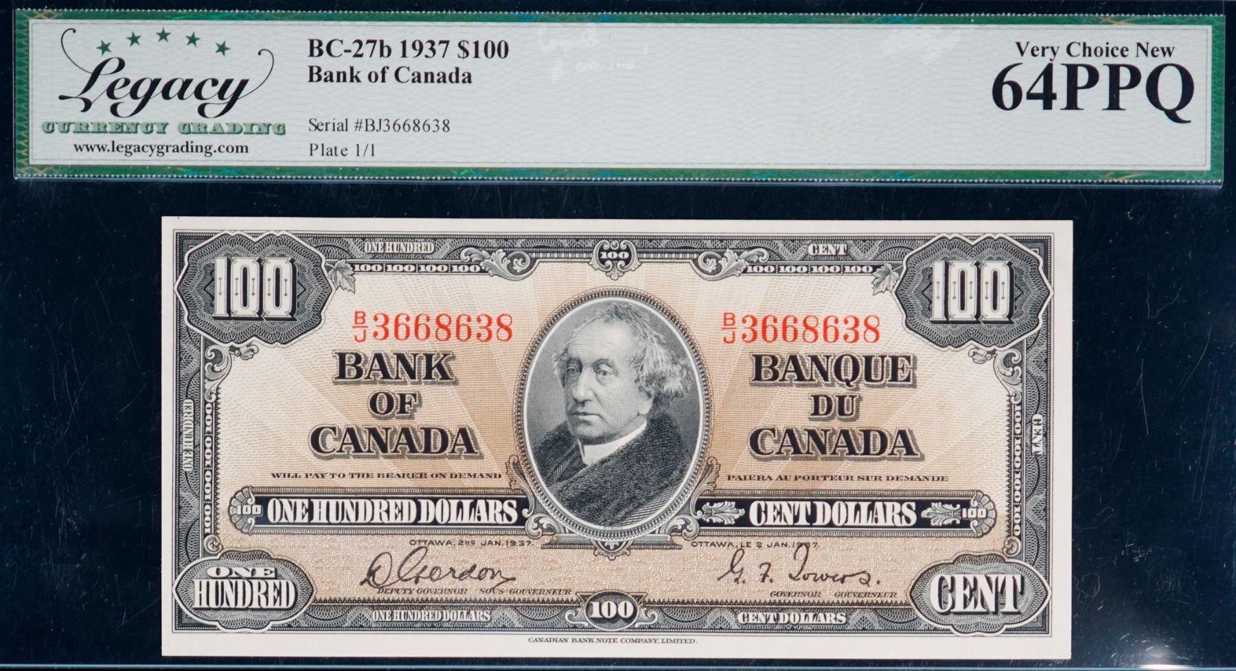 1937 $100 BC-27b #BJ3668638, Legacy Choice Uncirculated-64PPQ.