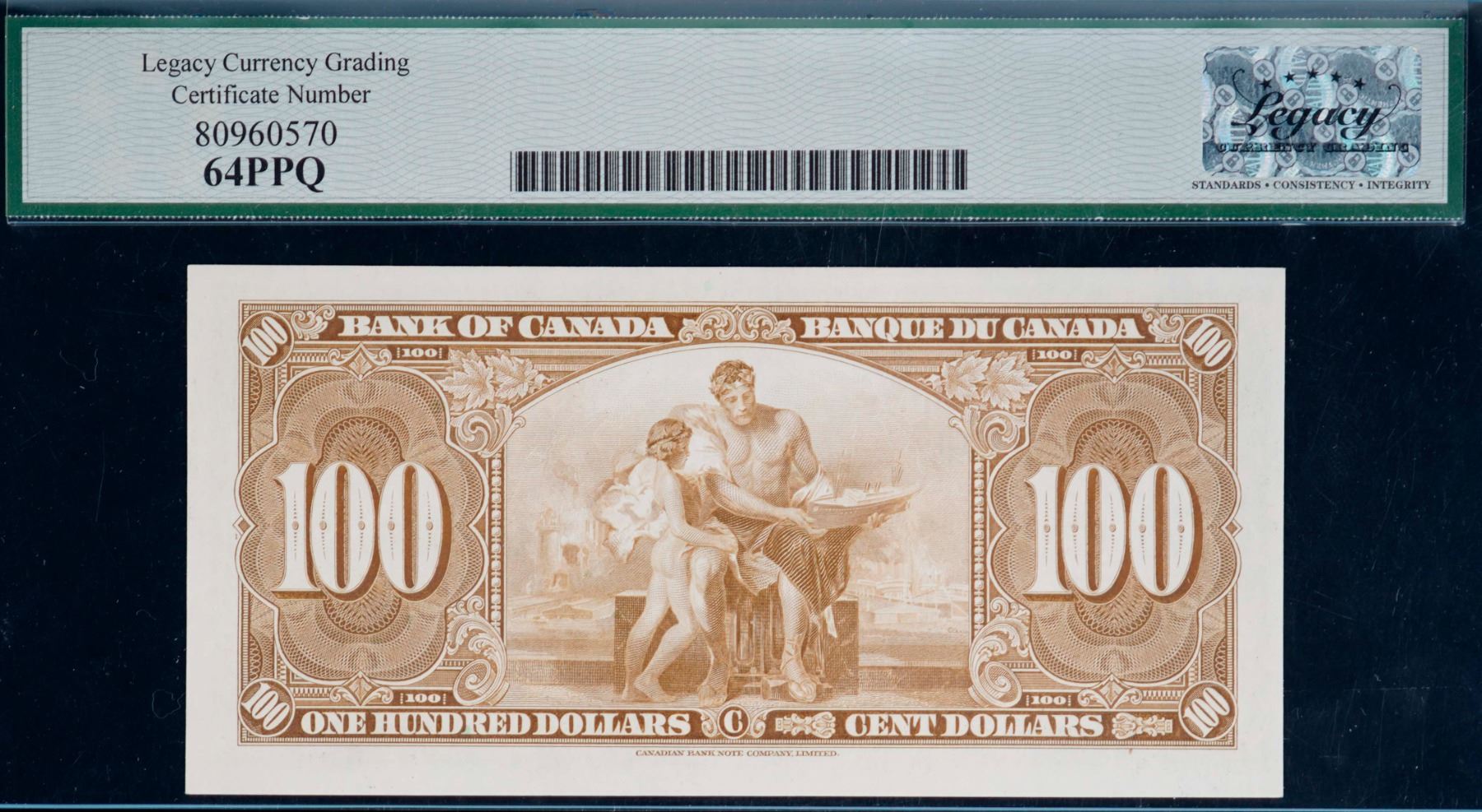 The cataloguer has taken every reasonable measure to ensure that all of the lots in this sale are as described and genuine. All raw coins and banknotes have been graded by the cataloger or the auction house which represent our best professional opinion. To grade coins and banknotes, we use Canadian grading standards, 42 years of experience and good conscience. However, grading is a subjective description in the opinion of the cataloger or the auction house. Among experts there are often differences of opinion on the grading and the eye appeal of a coin. The strike and the state of preservation are often debated. The Canadian Numismatic Company acts as an agent between consignors and buyers. The Canadian Numismatic Company does not guarantee that any coin or banknote cataloged will meet the standards, or the grade, of any third party grading companies. No warranty, whether impressed or implied. Items are as is, no warranty given. We cannot accept responsibility and waive all liability resulting in financial losses, and or incidentals accruing from the sale of any items, nor can we guarantee that items graded by third party services will grade the same if submitted to a different grading service or re-submitted to the same company. Statements by The Canadian Numismatic Company regarding the condition, the eye appeal, the strike and the population of items are for guidance only. All lots offered are sold "AS IS". Title to all lots remains with the auction house until paid for in full by the purchaser. But they are held at the risk of the purchaser once the time of the sale.