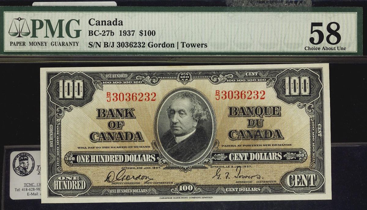 1937 $100 BC-27b PMG AU58. #BJ3036232