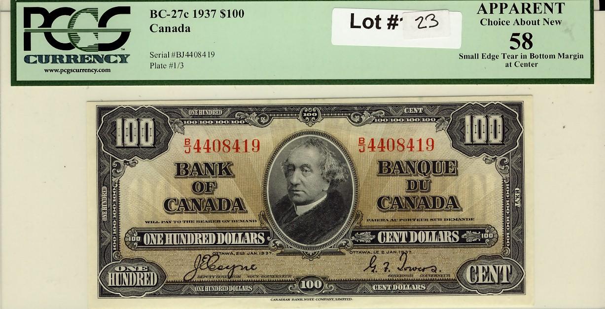 1937 $100 BC-27c B/J 4408419 PCGS 58