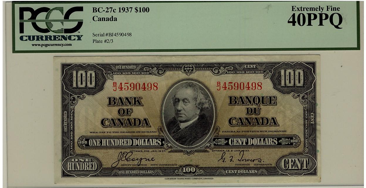 1937 $100 BC-27c B/J4590498 PCGS EF40PPQ