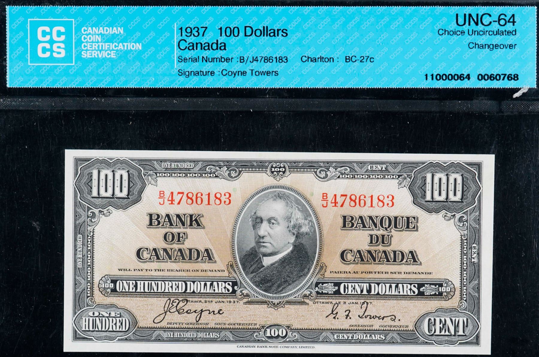1937 $100 BC-27c #B/J4786183 CCCS Choice Uncirculated-64
