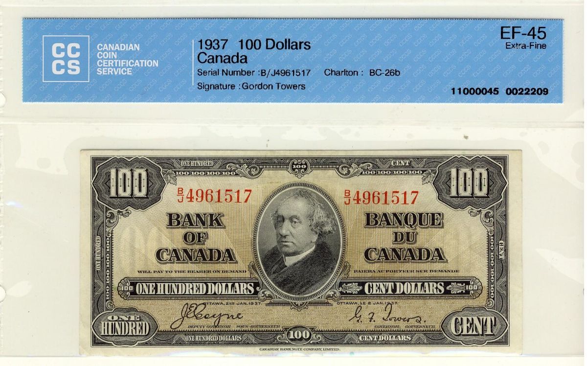 1937 $100 BC-27c #B/J4961517 CCCS EF45
