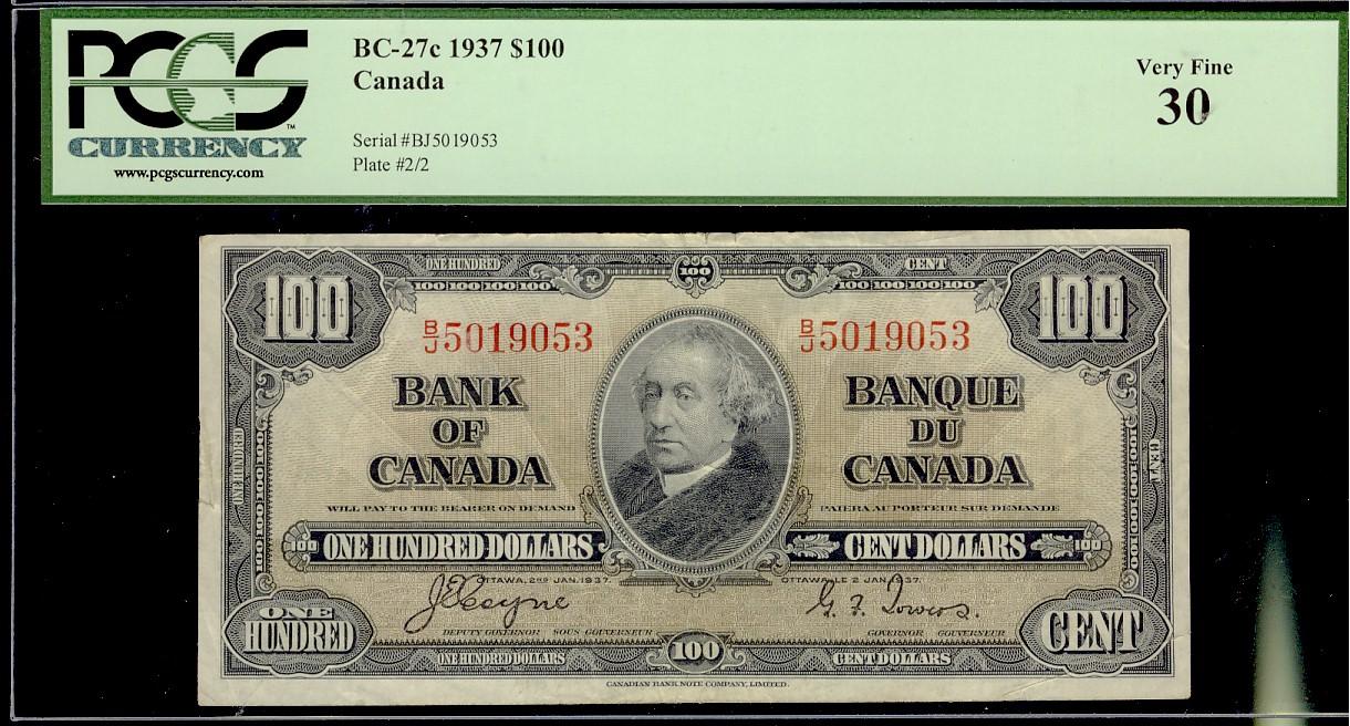 1937 $100 BC-27c PCGS VF30