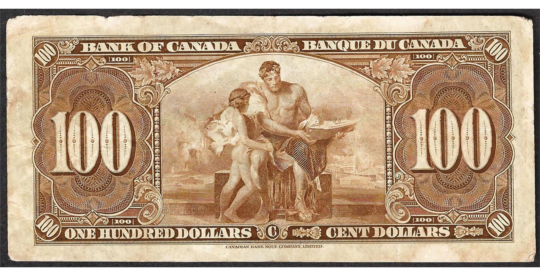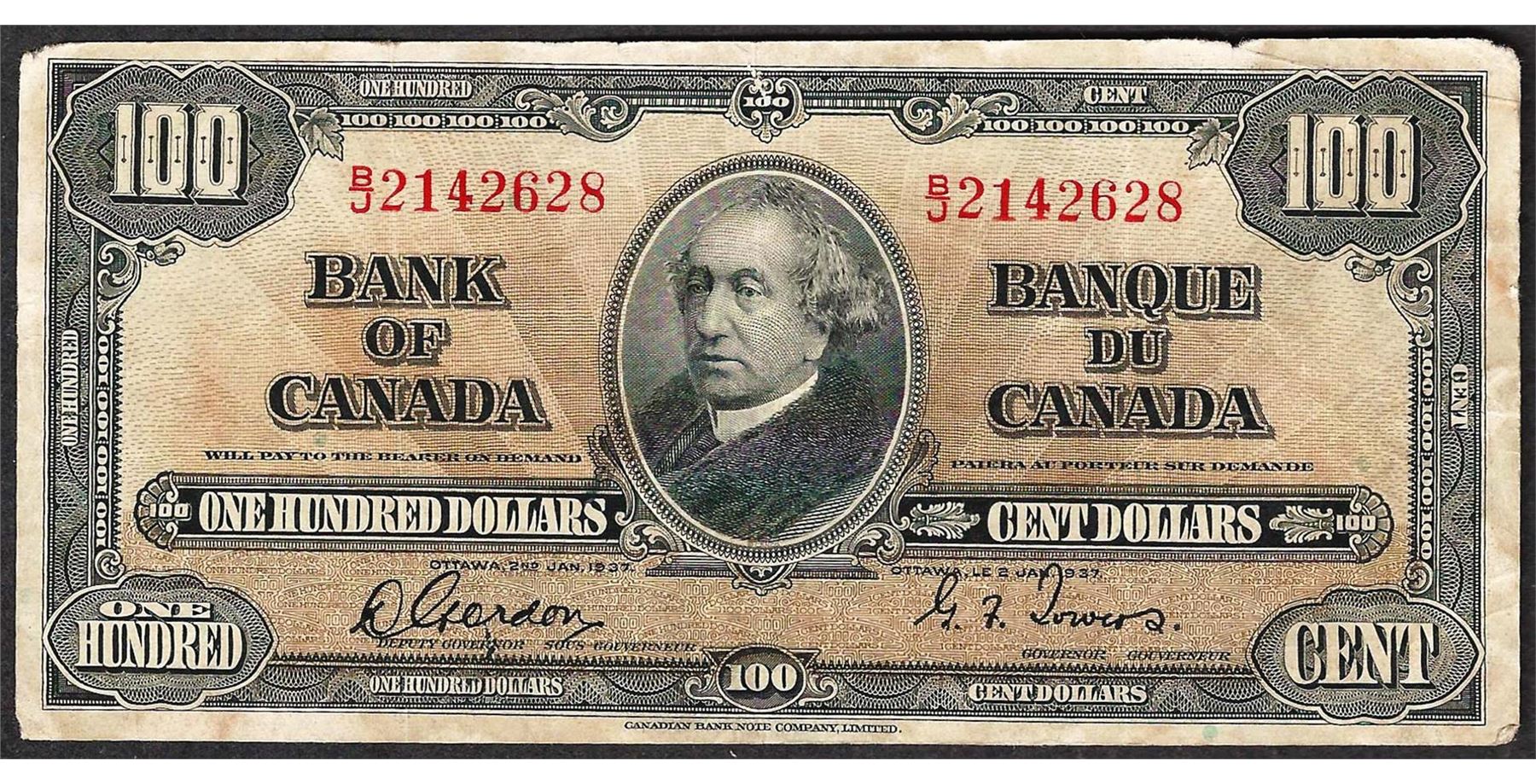 One 1937 $100 Bank of Canada Note.