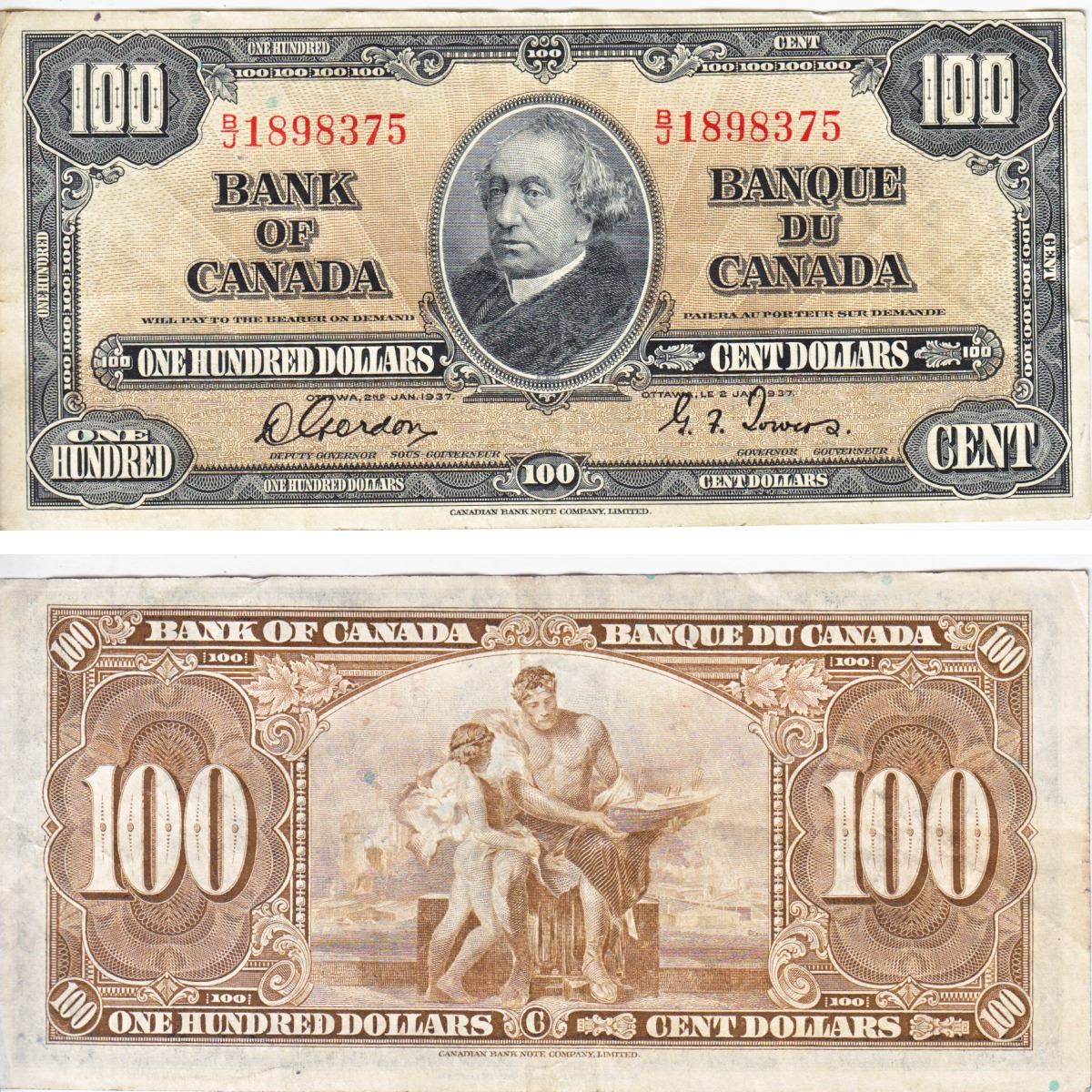 1937 $100 Note from the Bank of Canada; cat code BC-27b, Gordon-Towers signatures in Extra Fine Condition. Buyers Premium will be added on all items as per our terms of sale. We accept Paypal, Credit Card, E-Transfer Payments, Cheque or Money Orders (there is an additional 3% fee for using Paypal or Credit Card). All invoices will be emailed immediately following the auction, please contact us if you would like to pay by credit card or receive a new revised lower total for mailing in payment or sending an e-transfer (3% discount). All Items Are Sold "AS IS", no returns