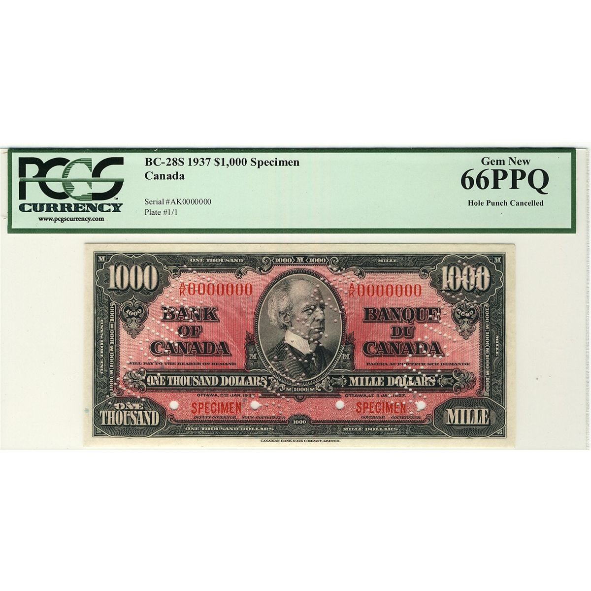1937 $1000 BC-28S. PCGS UNC66PPQ. Great example with great margins. Vibrant colours. So attractive.