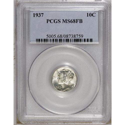 <B>1937 10C MS68 Full Bands PCGS.</B></I> Few pieces can rival the technical near-perfection of this boldly struck piece. Essentially untoned with a few tiny luster breaks at the lower obverse. Population: 30 in 68 Full Bands, 0 finer (9/06).<BR><BR><b>Shipping:</b> Coin/Currency (<a target="_blank" href="http://www.heritageauctions.com/common/shipping.php">view shipping information</a>)