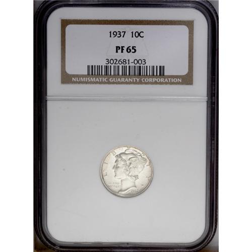 <B>1937<10C> PR65 NGC.</B></I> Sharply struck with an even layer of creamy, opaque toning over both sides of the coin. Two or three wispy lintmarks (as struck), located near the left obverse border, have toned to a dark russet color.