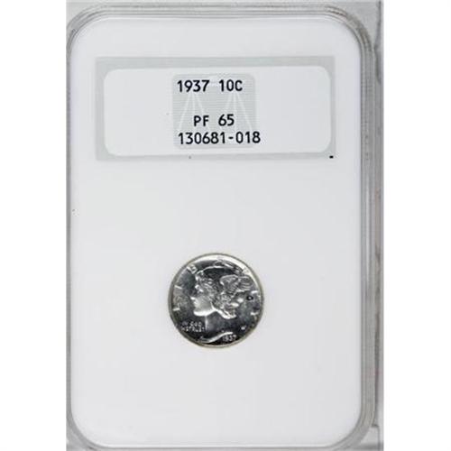 <B>1937 10C PR65 NGC.</B></I> NGC Census: (276/555). PCGS Population (520/679). Mintage: 5,756. Numismedia Wsl. Price for NGC/PCGS coin in PR65: $600. (#5072)<BR><BR><B>Coin Engraver:</B> Adolph A. Weinman<BR><BR><b>Shipping:</b> Coins & Currency (<a target="_blank" href="http://www.heritageauctions.com/common/shipping.php">view shipping information</a>)