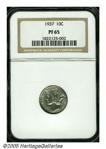 <B>1937<10C> PR65 PCGS.</B></I> The obverse is essentially brilliant, while rich sunset-orange and sea-green toning blends together on the reverse.