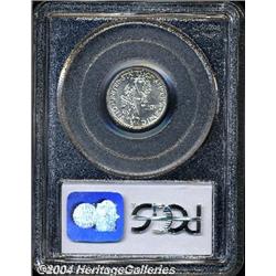 <B>1937<10C> PR65 PCGS.</B></I> Brilliant surfaces are visited by touches of dappled milky color, and a few speckles of gold around some of the margins. Exquisitely struck, and no marks of any significance. <BR><BR><B>Important notice:</B> Heritage usually auctions material at the rate of 200-250 lots per hour. On some occasions eBay Live bid software or the Internet may not be able to keep up with the pace of the auction. We recommend placing a realistic absentee bid now as insurance to avoid disappointment. Occasionally the auctioneer may eliminate or reject an eBay Live bid, and the auctioneer may also reopen a lot after the close of the eBay live bidding (usually because we missed an audience bid), and may reject your bid even if it shows you as the winning bidder. By bidding via eBay Live, you agree that Heritage may award the lot to another bidder at its sole discretion under the circumstances described above or any other reasonable circumstances. Since eBay bids are not shown to us until we open the lot on the floor, we treat those bids just like floor bids. In most cases the floor responds before the eBay bid is presented to us, due to Internet lag time, so for consistency we have made it a policy that floor bids are always considered first over tie eBay live bids. Also please note that all Heritage lots purchased through eBay Live carry a 20% Buyer's Premium. Please make sure you read the Terms and Conditions before you bid.
